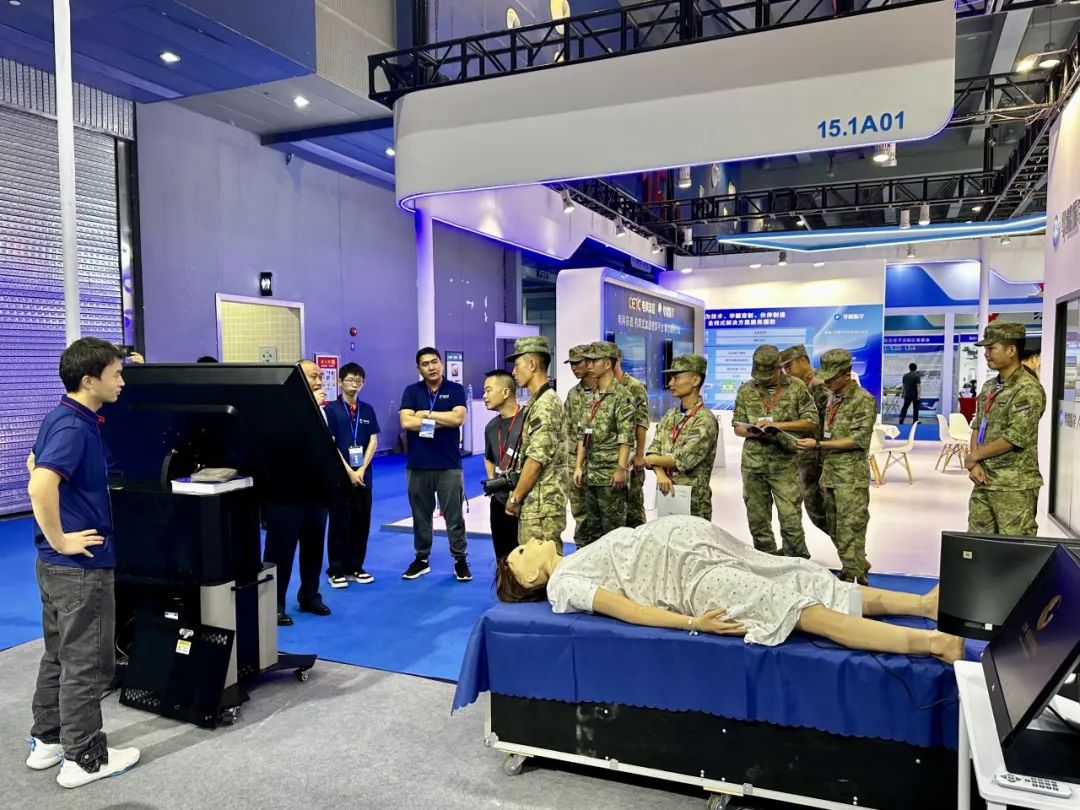 天堰科技作为国内高端医教产品研发制造商和服务提供商,也积极投入卫勤培训设备的开发,并与国内著名军医大学进行强强合作。本次展会携智能化战创伤模拟训练系统、自救互救模拟人、智能分娩模拟人、临床医学模拟病人系统等多款自研产品参加。在为期3天的会展中,天堰科技本着 “让真实触手可及”的宗旨,向参展人员充分展示了天堰科技在军民两用、医学教育领域内的行业优势、产品专业性和丰富性,吸引了众多部队领导停驻展位,交流沟通。
